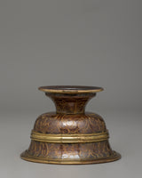 This Tibetan Offering Water Bowl Set is crafted with spiritual devotion and comprises seven elaborately carved copper bowls with brass decorations. Each bowl is 7 cm high and 10 cm in diameter, and it is mainly used in Buddhist ceremonies and altar offerings. The 6.5 cm broad base provides stability, while the 5 cm inner depth allows symbolic water offerings or other religious artifacts.
