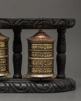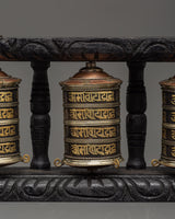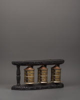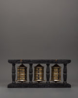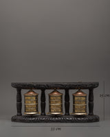 Triple Tibetan Prayer Wheel Set | Buddhist Meditation and Blessing Decor Piece