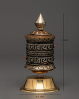 With a weight of just 0.056 kg, this tabletop prayer wheel is ideal as a travel companion or spiritual present. It has both spiritual importance and aesthetic appeal thanks to the colorful inlays and shiny brass base. With traditions in Tibetan Buddhism, this wheel exudes a serene and sacred vibe that can be utilized as a mindful visual anchor or during rituals.