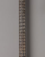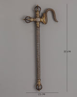 The Ritual Hook Ankusha is a powerful symbol of control and direction well-established in Buddhist history. Handcrafted from iron and embellished with 90% silver wire and brass inlays, this item is durable and wonderfully detailed. Standing 55 cm tall and 23 cm wide, with a weight of 1.97 kg, it demands a tremendous presence, making it excellent for ceremonial usage or as an unusual relic to display. The elaborate inlays and craftsmanship demonstrate a deep commitment to tradition and spiritual symbolism.
