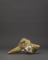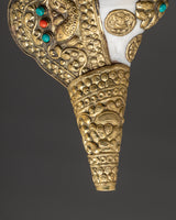 Tibetan Ritual Brass Conch Shell | Handcrafted Traditional Conch Shell Sound Offering Tool