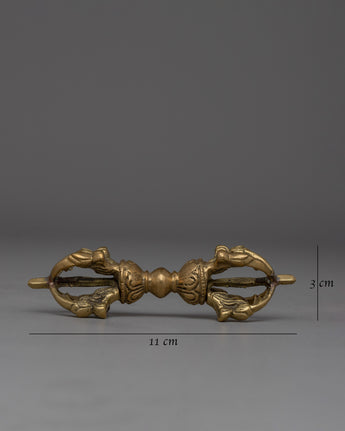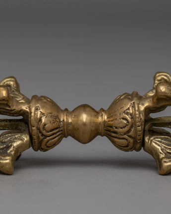 The Tibetan Ritual Vajra is a slightly but powerful sacred instrument that is expertly crafted of copper and exquisitely plated in electrogold. This vajra is slightly measuring 3 cm in height and 11 cm in breadth, but it contains with a deep spiritual energy. The vajra is more essential to Tibetan Buddhist rituals due to its divine aura, which is enhanced by the gold plating. In spiritual practices, the vajra is an essential element that symbolizes the indestructible essence of truth, strength, compassion, and a never-ending connection to the divine.