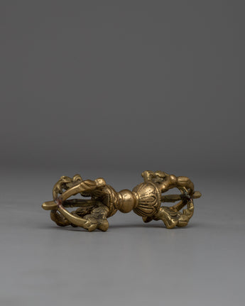 The Tibetan Ritual Vajra is small in size, but it has a powerful spiritual influence. Its 0.096 kg weight makes it easy to carry and lightweight, which makes it perfect for use in ceremonial offerings or personal meditations. The smooth electro gold finish and intricately crafted copper body of this object turn it into a visually stunning item in addition to a useful ritual instrument. It unites the symbolic and the beautiful, embodying the duality of strength and beauty.