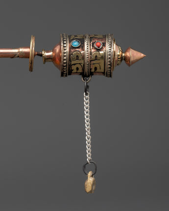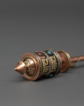 Tibetan Sacred Mantra Engraved Prayer Wheel | Tibetan Ritual Tool