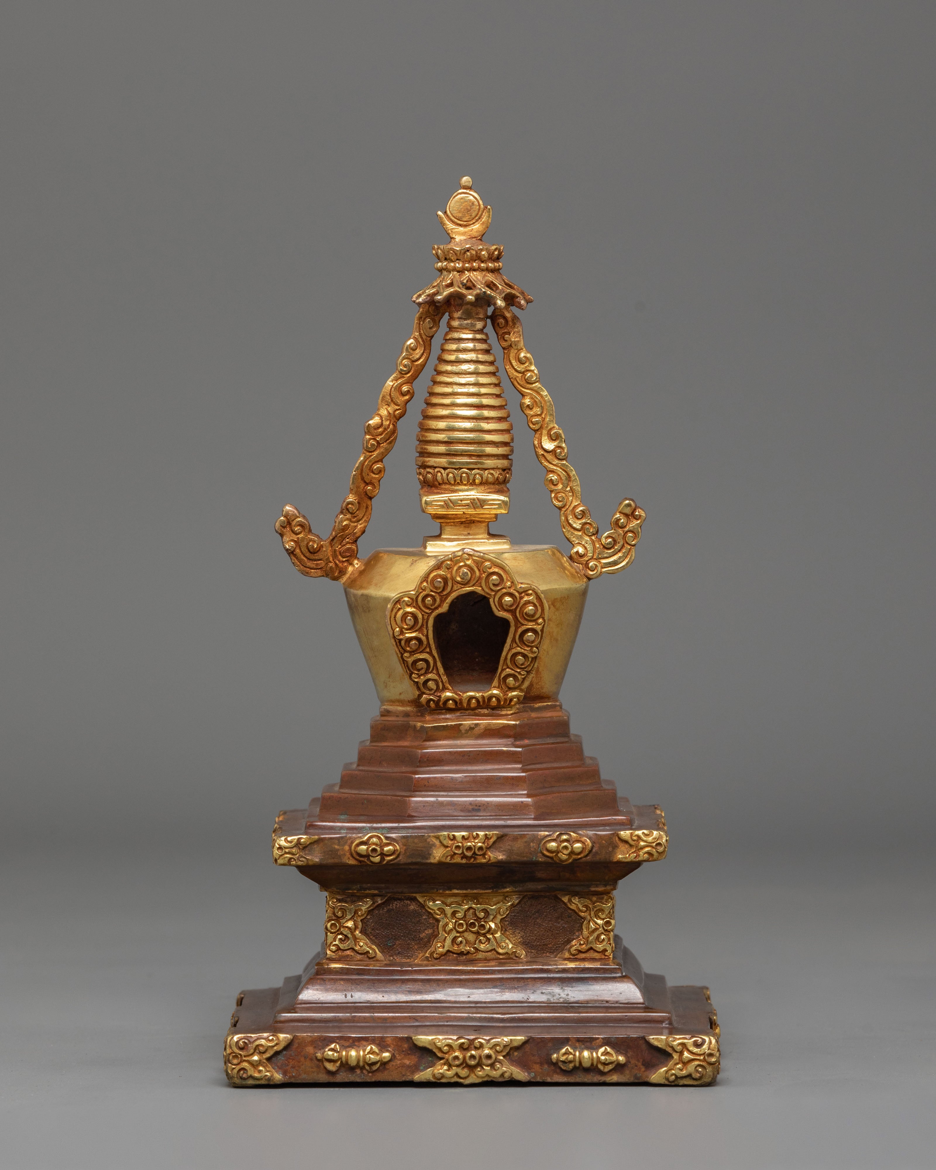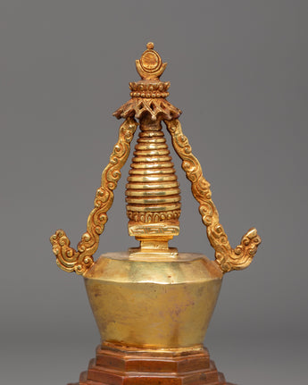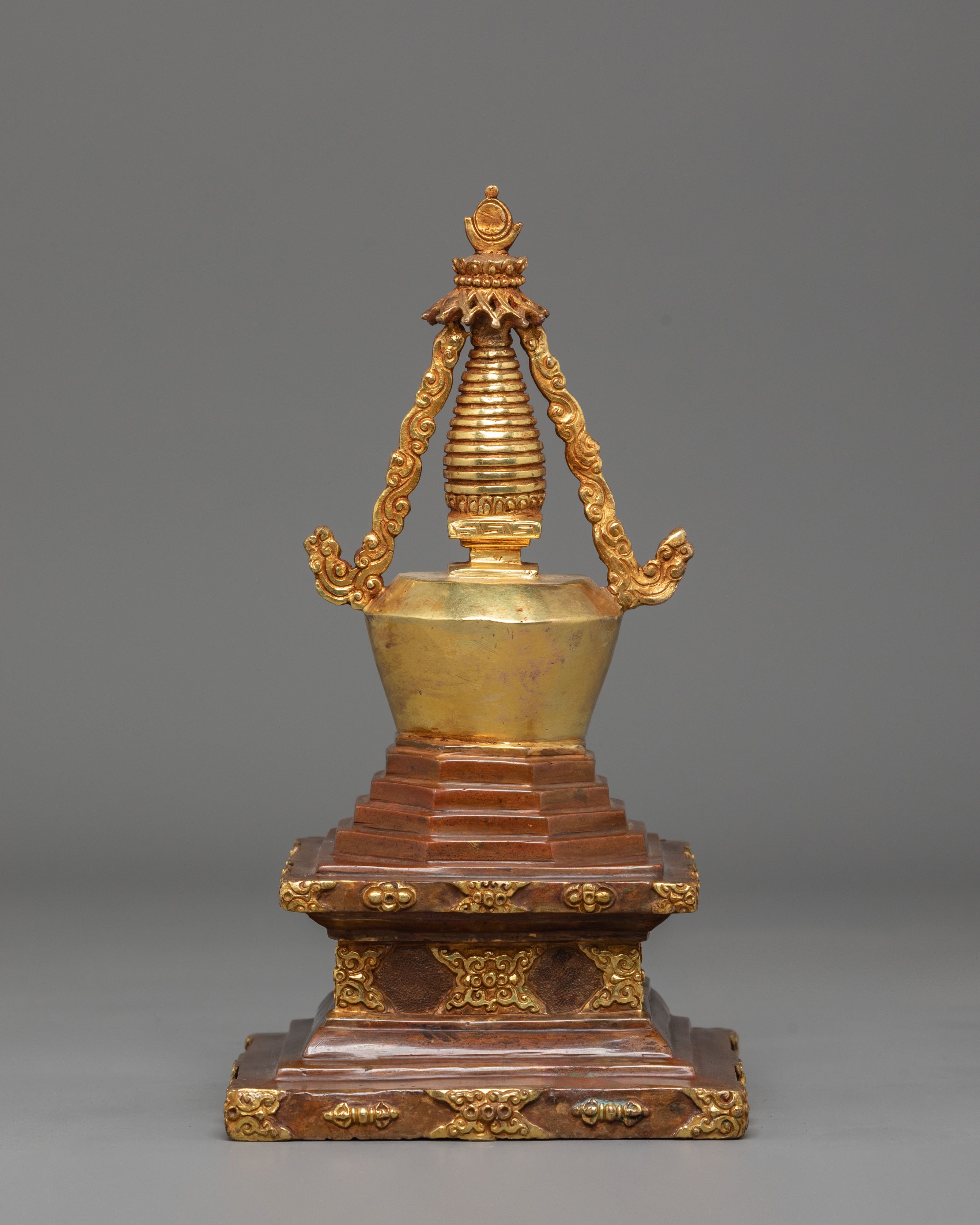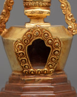 Handmade Gold Plated Tibetan Stupa | Sacred Himalayan Reliquary