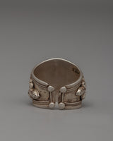 This magnificent Tibetan Silver Ring is a timeless work of art, meticulously made to exude elegance and spiritual importance. It is made of 92.5% sterling silver and 7.5% copper and includes a genuine turquoise stone known for its calming energy and link to balance and protection. Whether you follow Buddhist traditions or want a meaningful accessory, this ring is a charming reminder of harmony and inner calm.