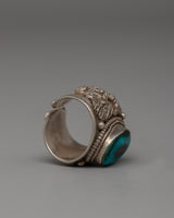Handmade Tibetan Silver Ring with Turquoise Stone | Elegant 92.5% Sterling Silver