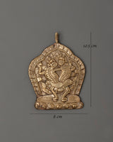 The Tibetan Skeleton Deity Citipati Wall Hanging is a handmade masterpiece crafted from white metal. In Tibetan Buddhist imagery, the Citipati are revered dancing skeleton deities who embody death's transcendence and the soul's eternal existence. This 10.5 cm tall wall hanging portrays two skeletons dancing, symbolizing life's spiritual journey and impermanence. Weighing just 0.056 kg, it's the perfect size for adding a magical touch to any home decor or spiritual space.