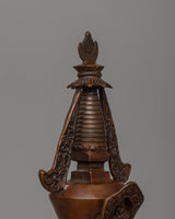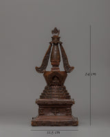 Oxidized Copper Stupa Artwork for Buddhist Altar, Meditation and Sacred Decor