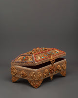 Tibetan Treasure Box with Turquoise and Coral | Buddhist Decor
