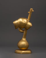 This Traditional Ganesh Brass Statue is a handcrafted Hindu deity figurine that represents prosperity, luck, and knowledge. Standing 30 cm tall and 13 cm wide, this diligently sculpted idol depicts Lord Ganesh's head wonderfully linked to a standing sitar, an ancient musical instrument that represents harmony and spiritual balance. The statue's base is sturdy, ensuring it will serve as a lasting and meaningful piece of spiritual decor for your altar, home, or office. The brass craftsmanship heightens its spiritual essence, making it an excellent complement to any sacred place.