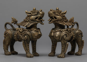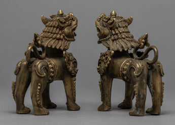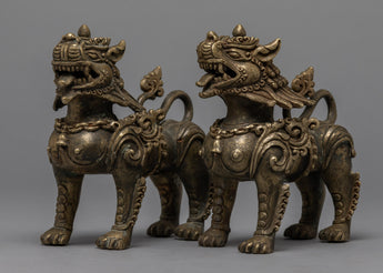 Handcrafted Traditional Lion Set | Tibetan Singa Set for Home Decor and Spiritual Gifts