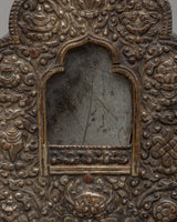The Traditional Tibetan Copper Ghau is a carefully crafted Tibetan item made of copper. This finely made box has elaborate motifs that reflect Tibetan art's rich cultural past. The complex floral and geometrical designs are expertly embossed on the surface, giving it a tactile, artistic appearance. Its exceptional craftsmanship reveals the careful labor required to create such an object. Including a tiny window through which precious relics or pictures can be put enhances the spiritual value of this item, which is frequently employed in Tibetan Buddhist ceremonies.