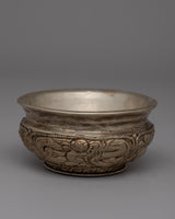 White Metal Offering Bowl - Symbol of Abundance and Spiritual Serenity