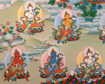 Traditionally Crafted Thangka Print For 21 Tara Praise | Tibetan Thangka Print For Mindfuless | Tibetan Buddhism Art