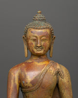 Tranquil Shakyamuni Buddha in Bhumisparsha Mudra | Gold-Plated Copper