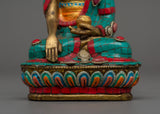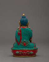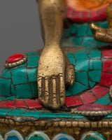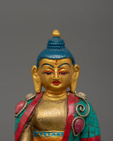Tranquil Shakyamuni Buddha Statue with Turquoise & Coral