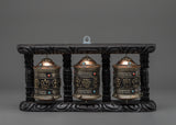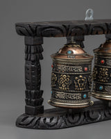 Triple Mantra Prayer Wheel Set | Buddhist Mantra Spinners in Wood Frame