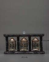 Triple Mantra Prayer Wheel Set | Sacred Mantra Spinners for Altar Decor