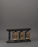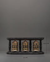 Triple Tibetan Prayer Wheel Set - Buddhist Altar Decor