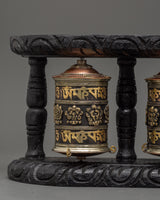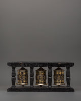 Triple Tibetan Prayer Wheel Set | Buddhist Altar Decor