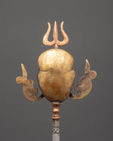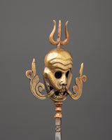 This traditional Trishul, expertly fashioned from copper, brass, and iron, is ideal for altar placement, temple adornment, or personal puja ceremonies. Copper and brass are highly valued metals in Hindu culture, recognized for their spiritual conductivity and divine vibrations. The sharp but balanced shape represents power, knowledge, and mastery over worldly impulses. Whether utilized in spiritual ceremonies, meditation areas, or as a sacred sacrifice, this Hindu trident is a powerful symbol of strength and dedication.