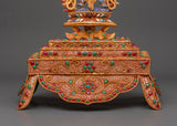 The throne underneath Mahakala is a work of Tibetan metalwork embellished with intricate filigree workmanship and brilliant artificial jewels. This Silver-Plated Six-Armed Mahakala statue radiates protection, wisdom, and divine strength, making it an ideal addition to any meditation room, Buddhist shrine, or collector's display.
