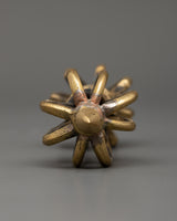 Crafted from brass, this 0.23kg Vajra has beautiful workmanship and a double-ended form that represents the unity of the material and spiritual worlds. The Vajra is a sacred ceremonial artifact in Buddhist and Hindu traditions, commonly utilized in prayers, ceremonies, and energy balancing. Whether put on a shrine, altar, or during meditation, this sacred thunderbolt is a potent channel for heavenly energy and protection.