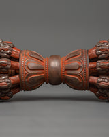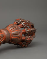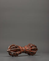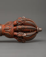 The Vajra in the artwork has finely carved Makara heads on both ends, representing strength and protection. An eight-petal lotus design in the center, including a spherical hub, enhances the piece's balance and harmony. The entire craftsmanship is elegant, with spiritual and metaphorical meaning.