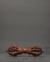 This 31cm Iron Vajra for a Shrine is a potent Buddhist ceremony that represents invulnerability, wisdom, and spiritual strength. In Vajrayana Buddhism, meditation, and Tibetan ceremonies, the Vajra describes the confluence of compassion and wisdom and guides practitioners to enlightenment.