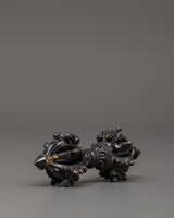 The Handcrafted Religious Vajra is a small yet effective ceremonial instrument used in Tibetan Buddhism to symbolize indestructible truth, wisdom, and compassion. This magnificent Vajra, measuring 3.5 cm in height and 9.5 cm in width, is crafted from oxidized copper, providing both durability and a rich, aged appearance. The Vajra, a weapon for cutting through ignorance, is a fundamental element in Vajrayana rituals, representing the unchanging nature of spiritual insight.