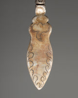 In Tibetan Buddhism, the Vajra represents indestructibility, spiritual might, and wisdom. The carved pattern on the blade provides a distinct element of spiritual purpose, heightening its value as a ceremonial object. This knife is used in Tibetan Buddhist rituals as a sacred implement for practitioners to purify, defend, or focus on their spiritual practice.