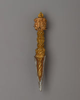 Handcrafted Copper Phurba with Gold Plating for Vajrayana Rituals