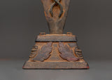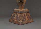 Vajrakilaya, a wrathful incarnation of Vajrasattva, is adored in Tibetan Buddhism for his unparalleled capacity to eliminate impediments to spiritual growth. Every element of this sculpture, from its expressive, wrathful expression to its ritual equipment's beautiful, intricate details, encourages concentration and dedication throughout advanced Tantric rituals and contemplative activities. He is frequently summoned for personal empowerment, spiritual cleansing, and eliminating obstacles to enlightenment.