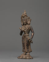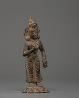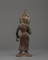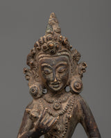 In Tibetan Buddhism, Vajrasattva is the Bodhisattva of purification, which is invoked in rituals to remove emotional obstacles, obscurations, and bad karma. This statue's antique patina and fine detailing make it the ideal partner for profound meditation rituals, altar preparations, and mantra recitation. It is the perfect item for practitioners, collectors, or as a spiritual present due to its small size and potent symbolism.