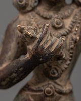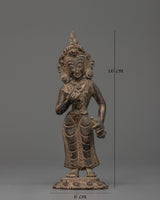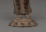 This exquisite Vajrasattva statue in antique copper finish, which is expertly handcrafted from antique-finished copper, will add clarity, innocence, and spiritual depth to your sacred place. Vajrasattva, who stands 16 cm tall, is depicted in a calm yet elegant position, holding the bell (ghanta) in one hand and the vajra (thunderbolt) in the other. These objects stand for method and wisdom, combining knowledge and compassion.
