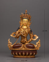 The Vajrasattva statue stands 33 cm tall and 23.5 cm wide, making it a substantial piece for display or ritual use. The gold plating enhances the figure's appearance, while the oxidized copper body ensures a sturdy and durable form. With a total weight of 2.56 kg, this statue is both a devotional item and a symbol of purification. Its rich symbolism and ornate detailing make it an excellent addition to any Buddhist art collection, reflecting Tibetan Buddhism's spiritual and artistic traditions.