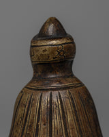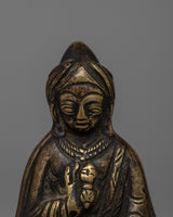 This handcrafted bronze statue is a way to appreciate the wisdom and compassion of the Vintage Guru Rinpoche Statue. This figurine, known as Padmasambhava, the recognized master of Tibetan Buddhism, is a beautiful depiction of his calm presence and spiritual importance. This compact statue, which stands 7 cm tall and measures 4.5 cm in width, is ideal for altars, meditation areas, or as a spiritual present for someone significant to you.