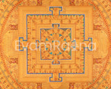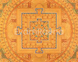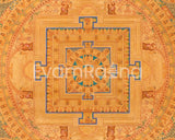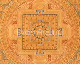 Mandala literally means a circle . The tibetan word for madala is Kyilkhor , which means “centre and surrounding environment .”  In simple terms it is a circle used as a visual aid for concentration and introversive meditation . Meditating using a mandala leads to the attainment of insights and it helps to increase one’s level of concentration . It also helps to activate forces within oneself which culminates into “Siddhi  ” or super – natural forces . The mandala is the graphic representation of this process . It is not only theoretical but practical as an operational scheme involving a clear plan for practical realization of the process within oneself . It thus becomes an instrument ( Yantra ) . It is believed that by just looking at a mandala one’s soul is spiritually purified. Thus , a mandala represents the palace of purity a magic circle cleansed of spiritual obstacles and impurities . The square of the sacred palace is enclosed in  multiple circles of flame, vajra and lotus . These three circles forming the outer rims of the mandala symbolizes enlightenment , which  the meditating person must gain , before he or she can enter the illuminated palace . The mandala then consists of the inner square where the deity of the mandala resides .