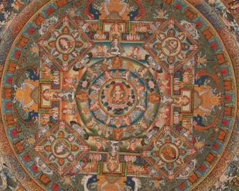 Vintage Mandala Thangka Painting | Tibetan Style Heavy Silk brocade with veil and Windties