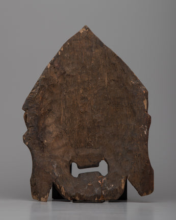 The Vintage Wooden Mahakala Mask, when shown in contemporary environments, creates a link between the past and the present and encourages reflection and admiration for the continuing heritage of Himalayan culture. Its presence gives any area dimension and personality and serves as a constant reminder of the deep spiritual meaning ingrained in traditional artistic forms.