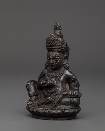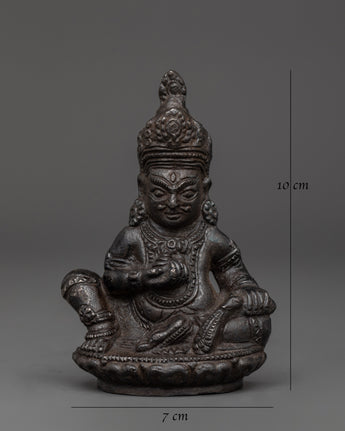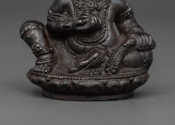 Our Iron Wealth Guardian Dzambhala Figurine will infuse the energy of prosperity into your sacred area. This handcrafted figure of Dzambhala, the Buddhist deity associated with wealth, abundance, and protection, measures 10 cm in height and 7 cm in width. The Wealth Guardian Dzambhala Figurine, crafted from solid iron, possesses a strong spiritual presence, making it an ideal addition to your meditation altar, shrine, or as a potent gift for loved ones seeking wealth and prosperity.
