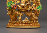 Dzambhala, seen as the incarnation of Kubera, the Lord of fortune, is a venerated figure in spiritual traditions. He symbolizes abundance, prosperity, and fortune. Dzambhala, known for his ability to remove poverty and offer financial stability, is a celestial defender and benefactor for those seeking riches and spiritual fulfillment.