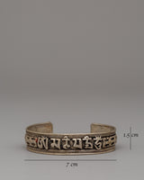 White Metal Buddhist Cuff - Spiritual Jewelry for Harmony and Protection