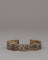 White Metal Buddhist Cuff | Spiritual Jewelry for Harmony and Protection