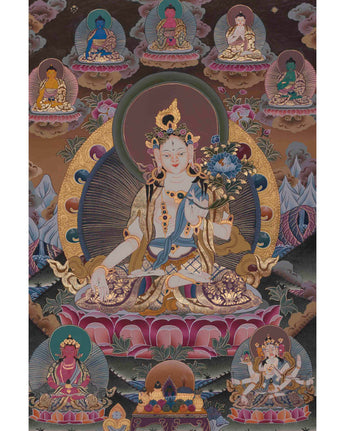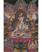 Original Hand-Painted White Tara With Other Bodhisattvas