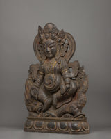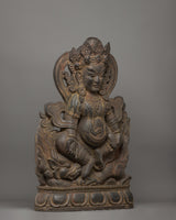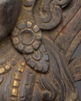 This intricately crafted sculpture is more than just an art piece—it is a powerful spiritual object. The detailed carvings enhance its divine presence, making it a focal point for meditation and devotion. The wrathful expression and sacred symbols reinforce Dzambhala’s ability to offer protection and abundance.