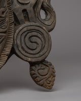 Enhance your sacred place with this hand-carved wooden Bhairava wall mask, a potent symbol of heavenly protection and strength. This intricately carved wooden mask, 41 cm tall and 27.5 cm wide, is a gorgeous wall hanging for decorative and spiritual purposes. Its lightweight design (0.9 kg) makes it simple to hang in your meditation room, temple, or living space, where it can guard against negative energies. This Bhairava mask symbolizes aged artistry and sacred significance, whether utilized for rituals, spiritual inspiration, or home decor.