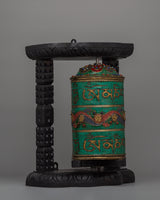 Wooden Frame Tibetan Prayer Wheel | Authentic Prayer Wheel with 8 Auspicious Symbols