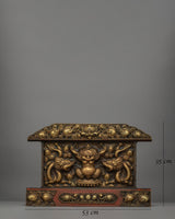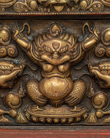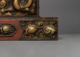 The Garuda on this wall hanging is depicted with outstretched wings and an intense expression, representing freedom, strength, and divine alertness. Garuda is frequently portrayed as a guardian, wielding his strong body to destroy bad forces and shield followers from harm. The elaborate brass-plated designs enhance the mask's spiritual vibrancy, while the dynamic pose emphasizes movement and dedication. This Garuda wall hanging is more than just an artwork; it represents divine protection and spiritual direction. Place it in your home, meditation area, or temple to invoke blessings, security, and power.